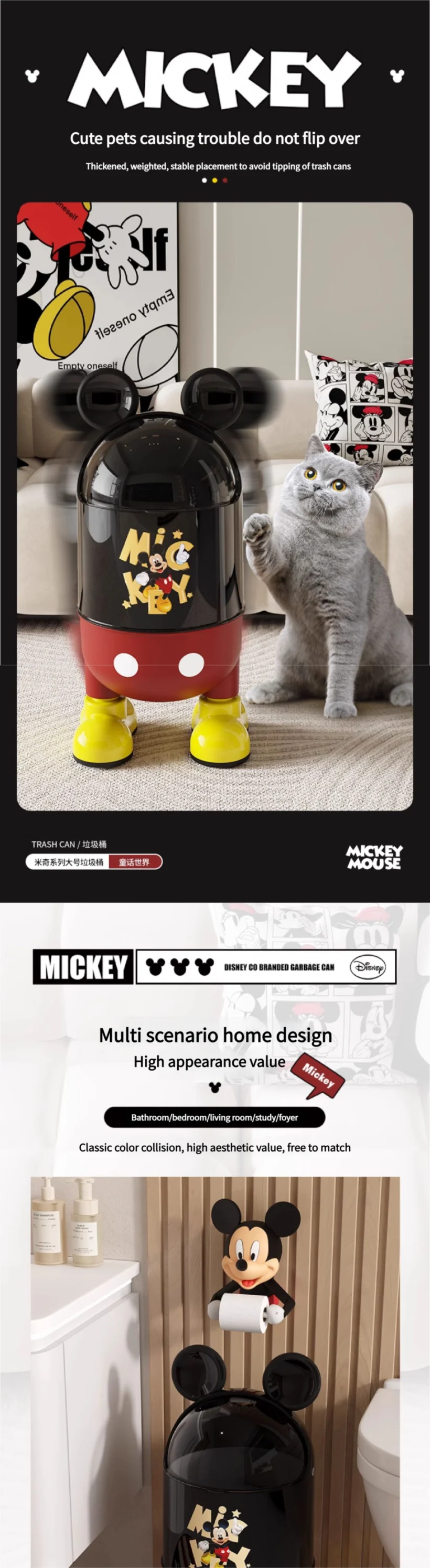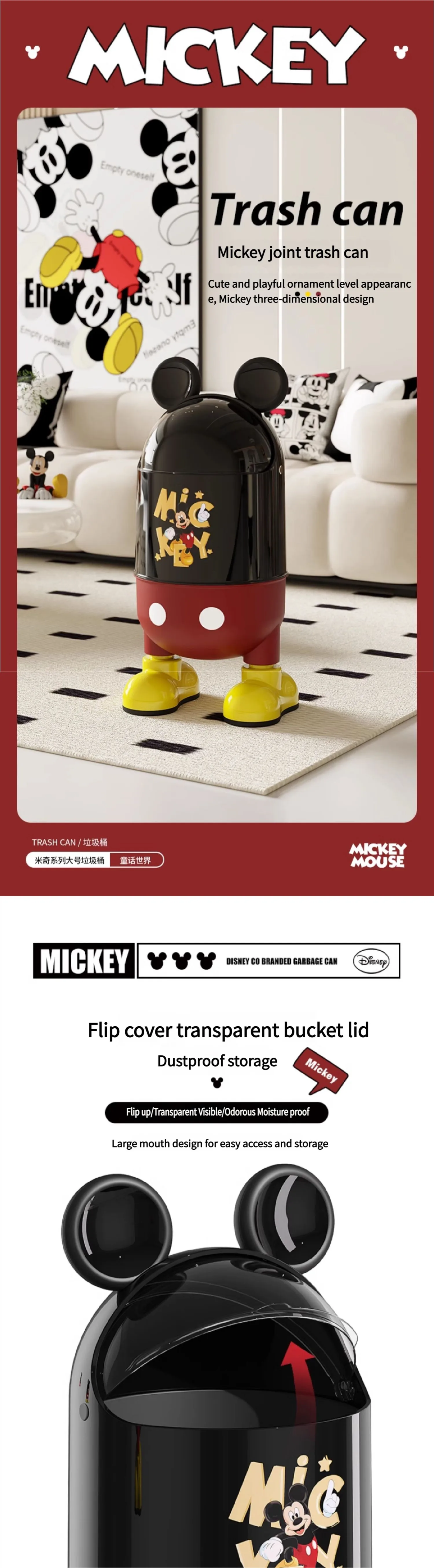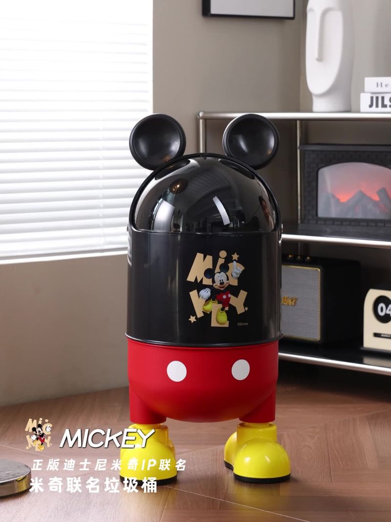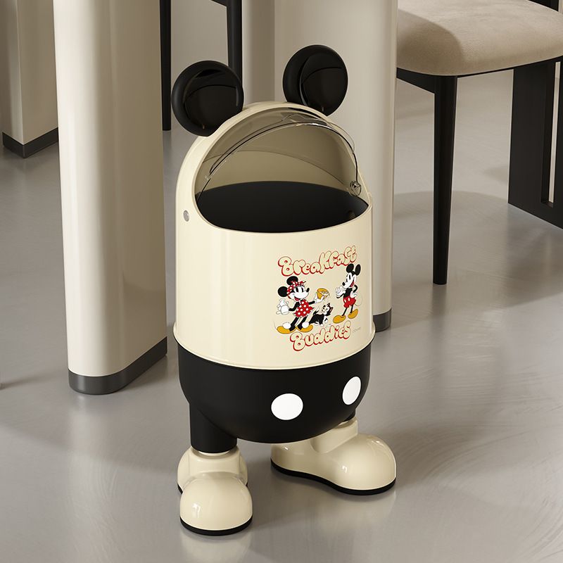 12L Standing Flip Top Cartoon Garbage Bin Cute Plastic Trash Can with Lids for Home Kitchen Storage PP Material