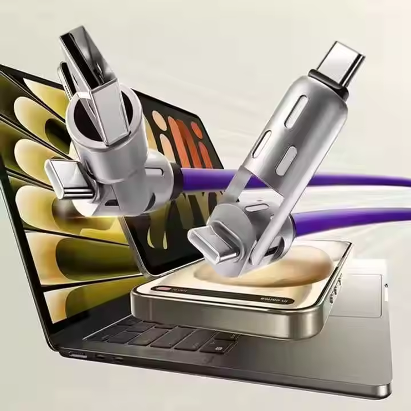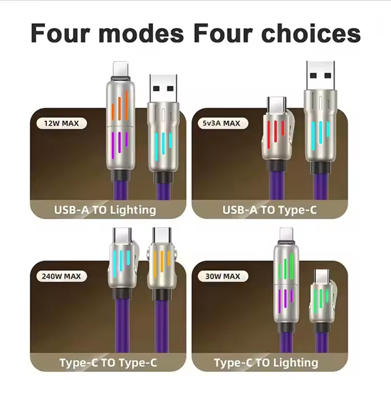 240W Super Fast LED Display USB Charger 4-in-1 Multi-Device with Rotating Elbow Type-C Mobile Phone and Printer Charger Cable