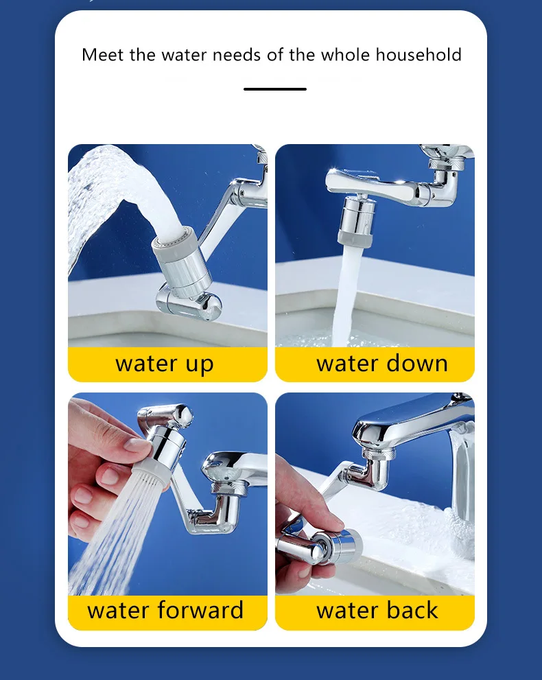 Faucet Splash Head Universal 1440 Degree Swivel Rotation Extender Faucet for Bathroom Kitchen Sink