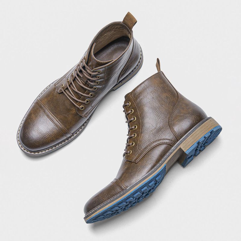 High Quality Men's Retro Ankle Boots Genuine Leather Lace-Up Closure Solid Rubber for Leisure Summer Season Carton Packaging