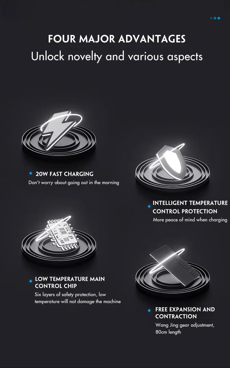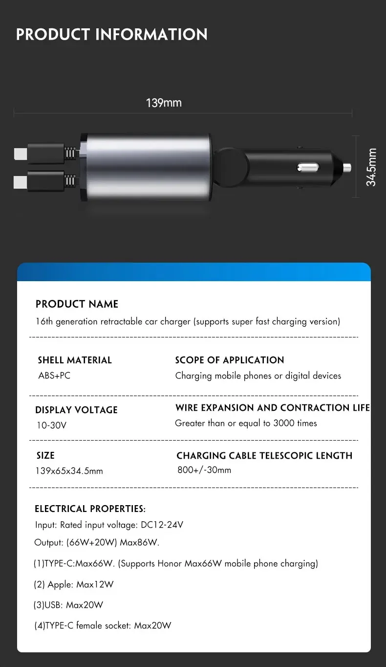 Newest 4-in -1 Multi- Charging Ports Car Fast Charger with Retractable Charging Cables and PD Charge Mobile Phone Car Charger