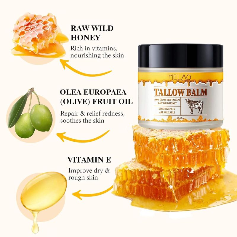 Natural Moisturizing Cream No Dryness Beef Tallow Moisturizer Hydrating Beef Tallow Whip Tallow Honey Balm