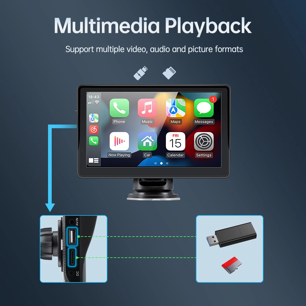 Portable Car Navigator Radio Carplay Mirror 7 Inch Touch Screen MP5 Player Display Multimedia Small Video Screen for Car