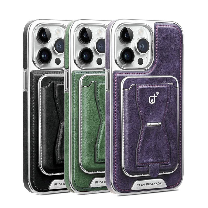 Rugged Wireless Magnetic Holder Phone Cases for iPhone 16 Pro Max 15 14 13 Men Business Leather Shockproof Cover With Card Slots