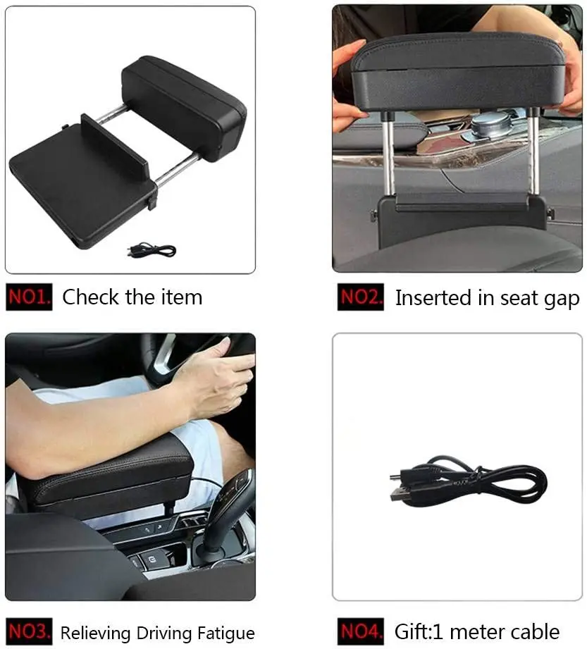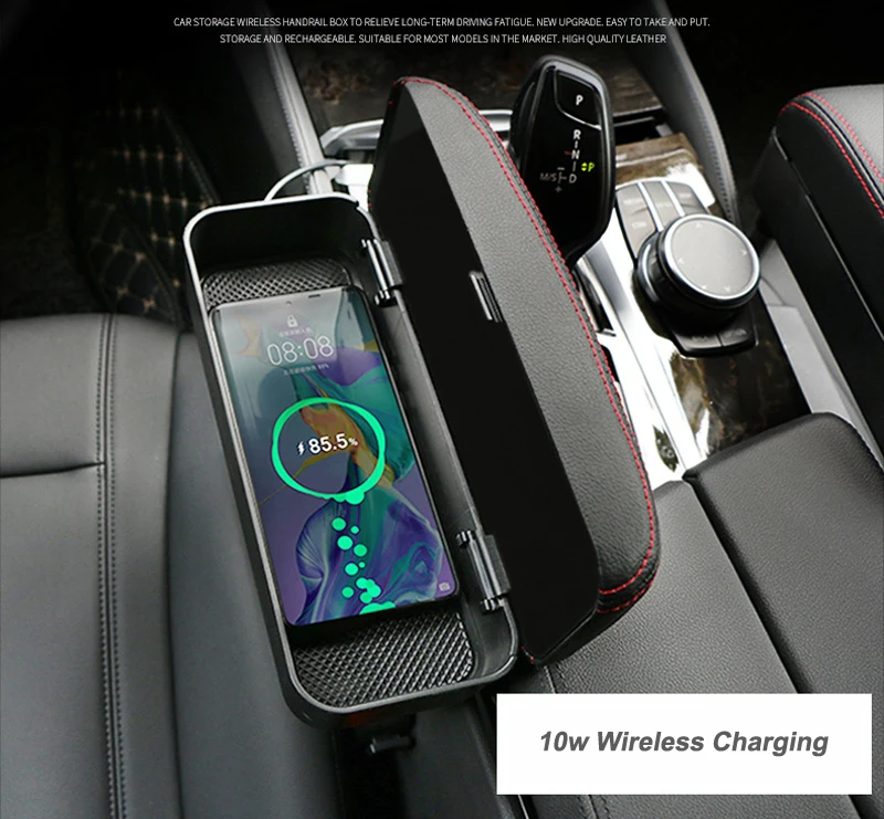 Universal Elbow Rest Arm Rest Pad Organizer Adjustable Height Car Armrest Storage Box with Wireless Charger